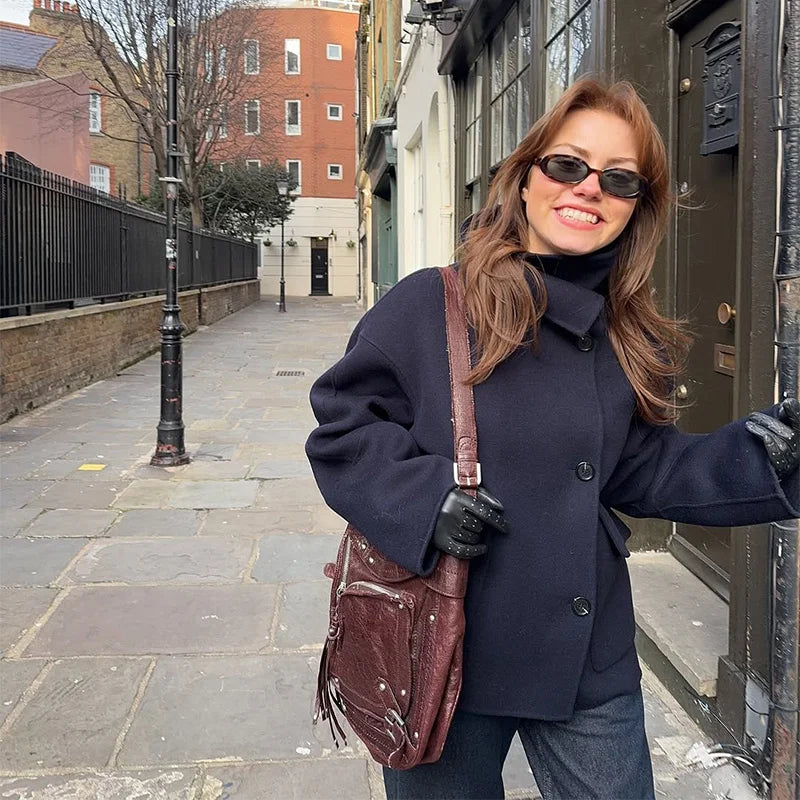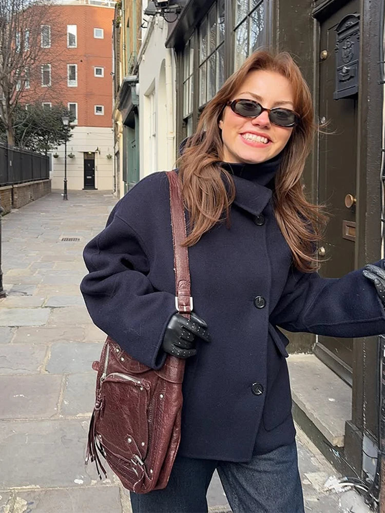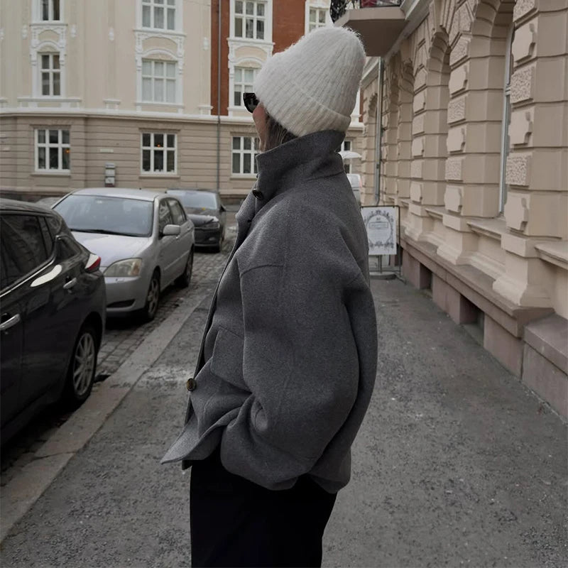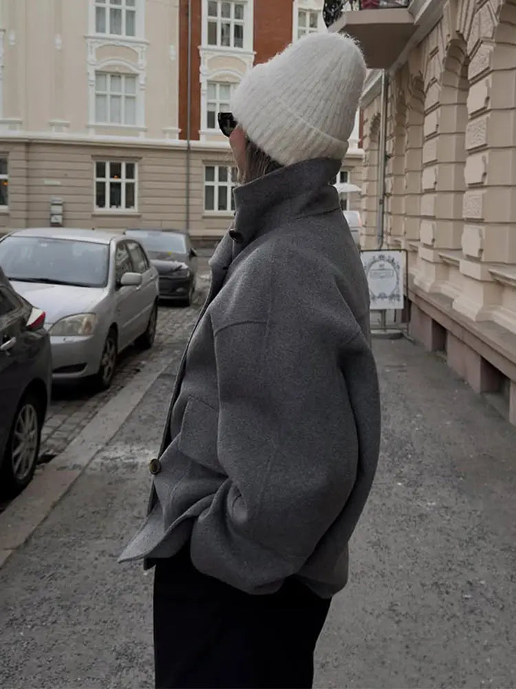 2025 Autumn Winter Stand Collar Coat Women Big Pockets Wool Blend Long Sleeve Single-breasted Thick Jacket Female Lady Outwears