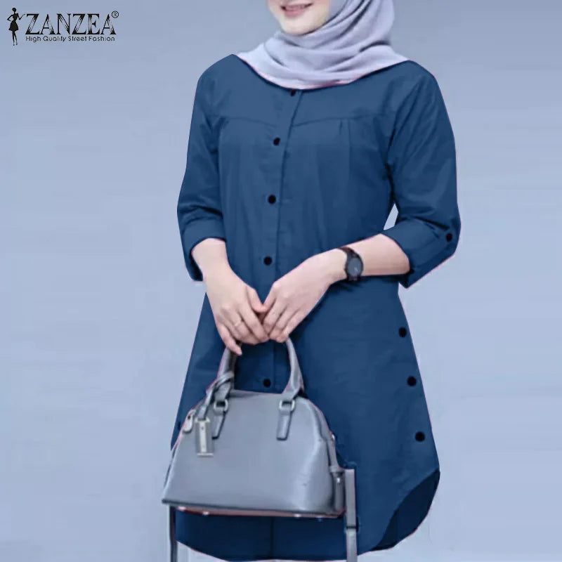 ZANZEA Fashion Abaya Muslim Blouse Woman Casual Holiday Baggy Shirt Long Sleeve O-Neck Tops Elegant Solid Islamic Clothing 2024