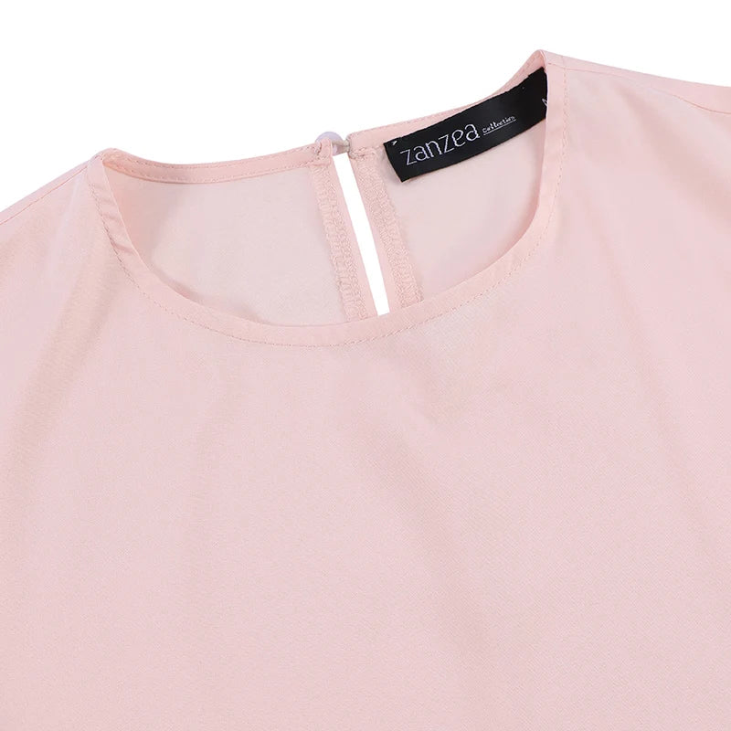ZANZEA Women Chiffon Abaya Eid Mubarek Muslim Dresses Robe Long Sleeve Hijab Vestidos Fashion Abayas For Women Isamic Clothing